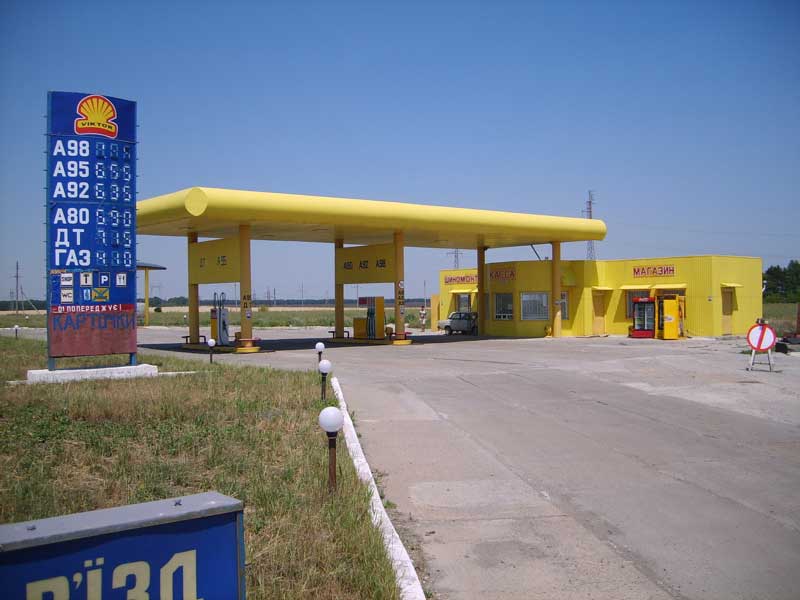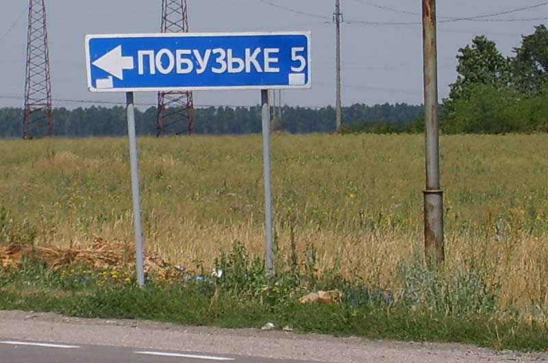 The Lonely Planet mentions the highlight of the journey being a descent twelve storeys down to the bottom of the Command Post, but we weren't taken down in the lift - maybe it was out of order. We took another underground corridor, and emerged into a building near the museum. Here we sat in a lecture room, and watched a DVD (in Ukrainian) about the site - featuring a test firing, and footage of the decommissioning process. It went on to show train-launched and vehicle-launched missiles being fired. Our tour ended by signing the Guest Book. We bought a leaflet with some information in English about the museum for 1 uah, and then were directed to the museum's drinks vending area before we parted company with our guide, and went on our way. Getting there and awaySo, if visiting one of the sites that contributed to the global terror of nuclear Armageddon sounds like your idea of a grand day out, and you happen to be wandering around Ukraine, then the Lonely Planet recommends getting a taxi to the museum from Uman (1 hr, 180 uah) or Pervomaysk (20 mins, 60 uah). We caught the bus from Uman to Pervomaysk, and found 'the' hotel (think there might only be one in Pervomaysk) where we got a good, clean basic three-bed room for 66 uah a night (the hotel seems to be undergoing refurbishment). The hotel is on the main square, adjacent to the theatre, on Lenin's right-hand side. We then visited the museum on a day trip - the first taxi (a Lada) didn't seem very keen to take us, but the next one (a '006' taxi) drove us to the museum for 60 uah. Just ask for 'mu-zey ro-ket-a Pobuzke', as everyone in Pervomaysk seems to know about it. The tour lasted about an hour and a half, then we decided to walk the 10-15 mins back to the main road where we were able to flag down a Kiev-Pervomaysk bus after a 20 minute wait, and get back to town for 15 uah for both of us. it might be easy enough to get to the museum on a Pervomaysk-Pobuzke bus, if you can get dropped off at the Pobuzke turning: after about 20 minutes on the bus, look for the Pobuzke (Побузьке) road sign, and the big yellow petrol station. Once you're off the bus, walk a little further north until you see the museum's sign pointing down it's stoney access road. ![]() Road sign on the Pobuzke turning