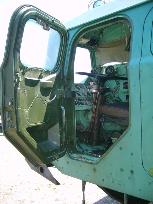 There is also a model of the shock-proofed, self-contained silo-based 12-storey Command Post, which could function sealed from the outside world for 45 days at a time. ![]() Model of Command Post silo on left, & missile silo on right. Our guide then lead us over to a massive 10-warhead SS-18 'Satan' ICBM parked outside (in fact there weren't any SS-18s stationed at this missile complex, it only housed fairly harmless 3-warhead short-range missiles trained on western Europe) ![]() SS-18 'Satan' Intercontinental Ballistic Missile We followed our guide past the Satan, and through a previously mined area to where the Command Post silo, and the remaining missile silo were sited. Above ground there are some buildings including a machine-gun post, and several vehicles related to the transport, and fuelling of the missiles. Once again, our guide allowed me to clamber into one of the exhibits - the cab of one of the trucks.